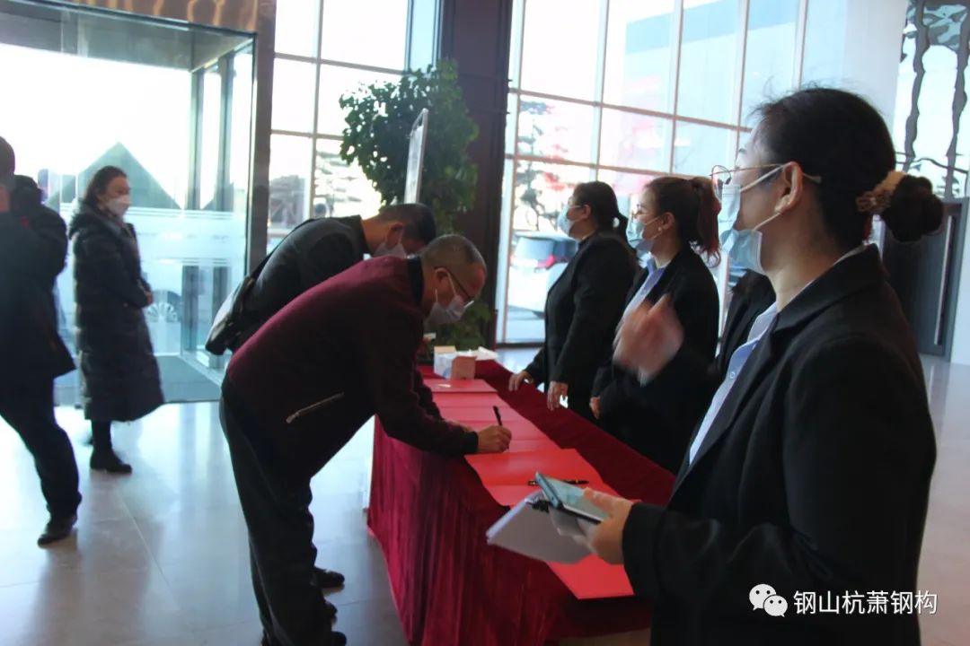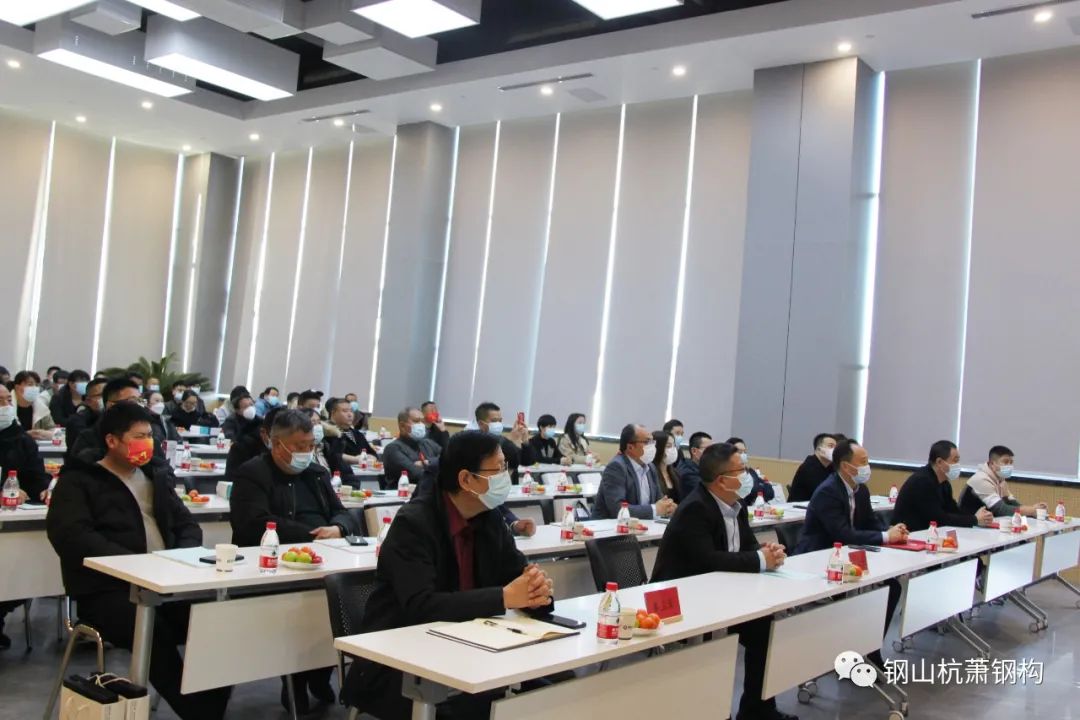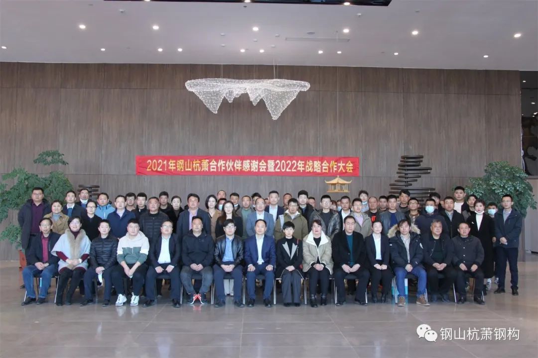 2022年2月26日,河北钢山杭萧钢结构工程股份有限公司(以下简称“钢山杭萧”)2021年钢山杭萧合作伙伴感谢会暨2022年战略合作大会在我公司综合研发楼召开。大会以“同心同行·共创共赢”为主题,共有百十余位供应商代表受邀参会,服务范围涵盖主原料类、辅材类、设备类、气体类、围护类等。