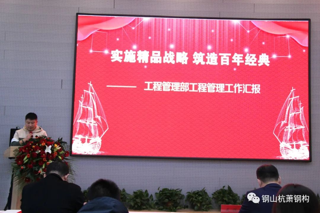 随后,副总工程师车玉军、工程管理部经理任向楠、总工程师王小平分别作出以质量管理、工程管理、工程履约和质量把控为题的报告,从钢结构建筑市场、2022年原材料采购质量管控、赋能管理以及钢结构产业发展现状进行了分享汇报。他们表示,为应对市场经济形势变化,倡导大家互为客户质量当先、互享互补、精准合作。