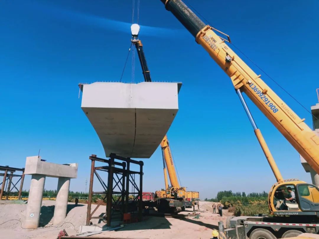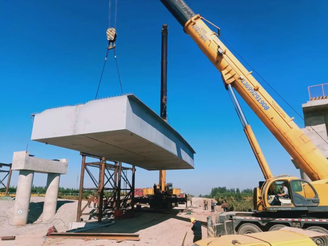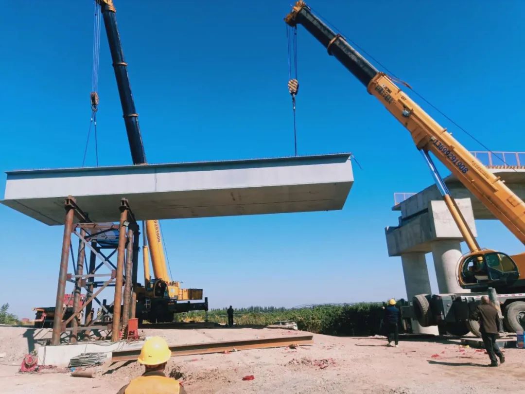 10月17日,当施工人员用两台吊车将首联钢箱梁稳稳架设在南大王枢纽互通D匝道2号桥的两条预定位置上,荣乌高速项目首联钢箱梁成功架设,标志着钢山杭萧项目部取得重大进展。