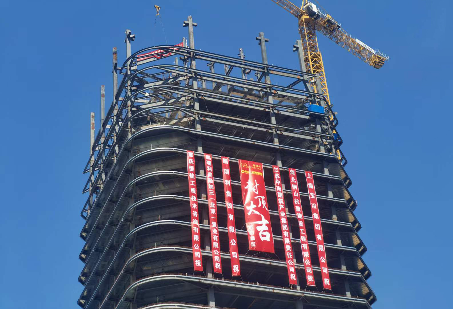 2023年7月6日,由河北钢山杭萧钢结构工程股份有限公司(以下简称“钢山杭萧”)承建的北京市通州区运河核心区VIII-14-1地块工程项目顺利封顶。